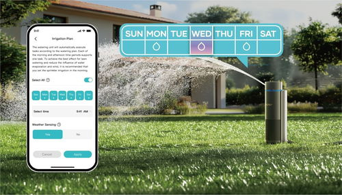 Inteligentný zavlažovač IrriSense Aiper poskytuje kompletné riešenie pre plochy s rozlohou 200 - 400 m². Systém ponúka kruhový, sektorový, kvapkový a hmlový postrek s nastaviteľným uhlom až 360° a dosahom 12 metrov. Sofistikované riadenie prietoku zabezpečuje optimálnu distribúciu vody pre rôzne tvarované plochy.