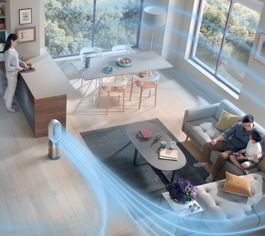 Technológia Air Multiplier uvoľňuje vyčistený vzduch, ktorý cirkuluje a mieša sa s okolitým vzduchom v miestnosti.