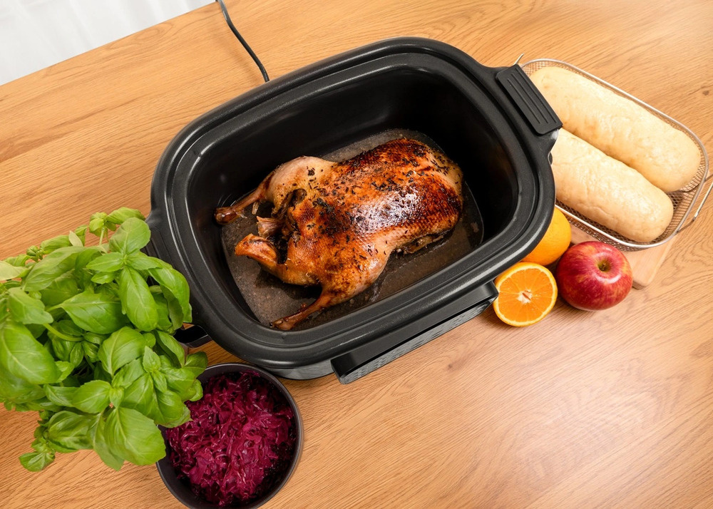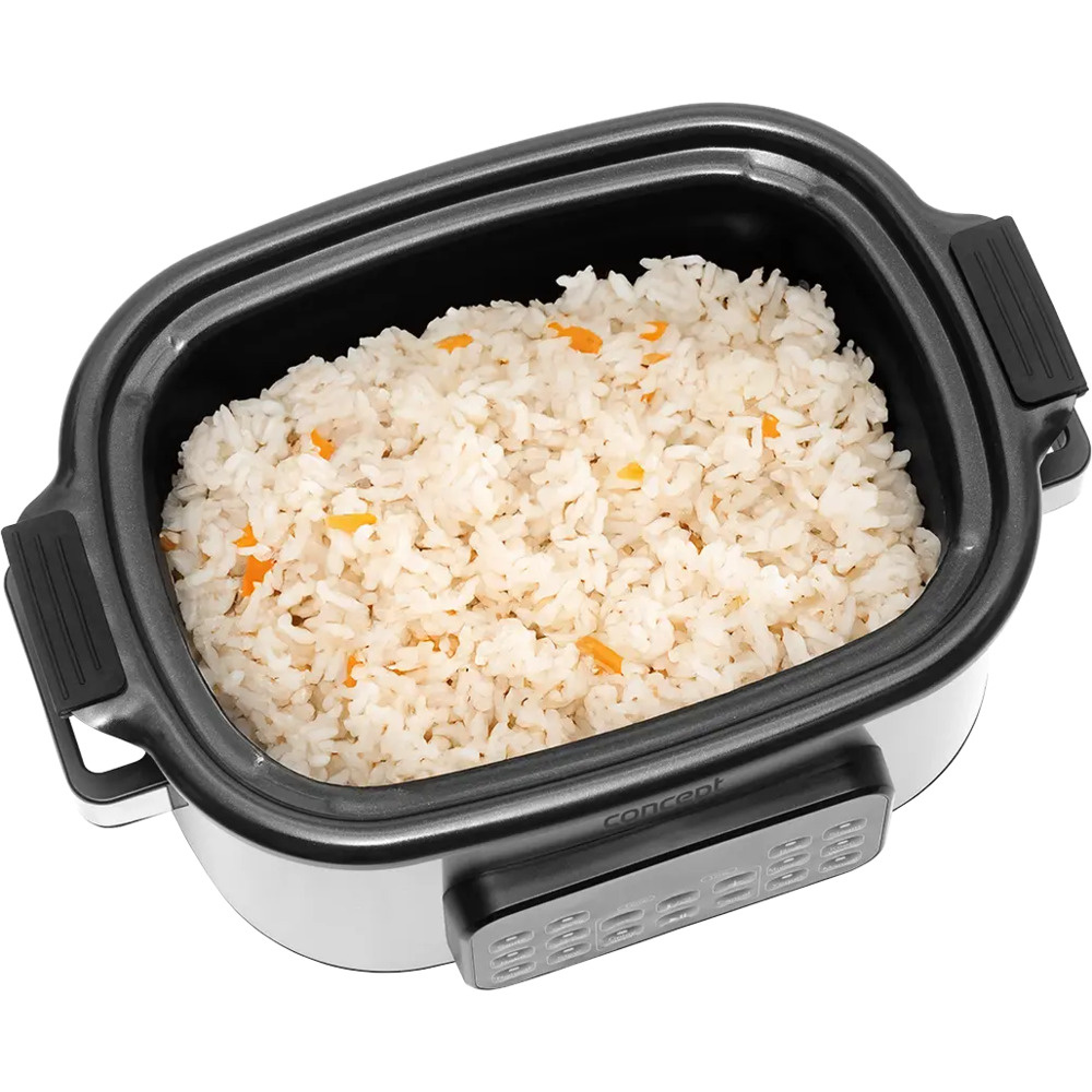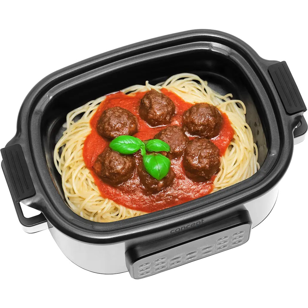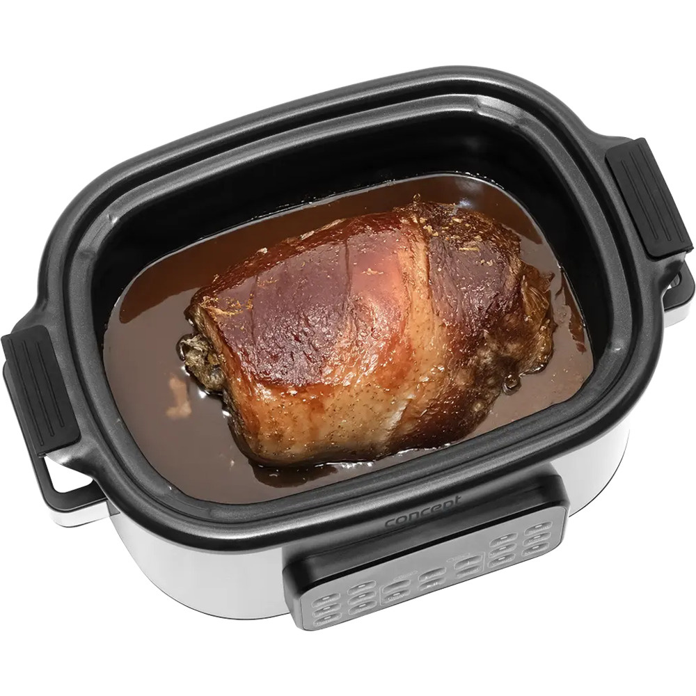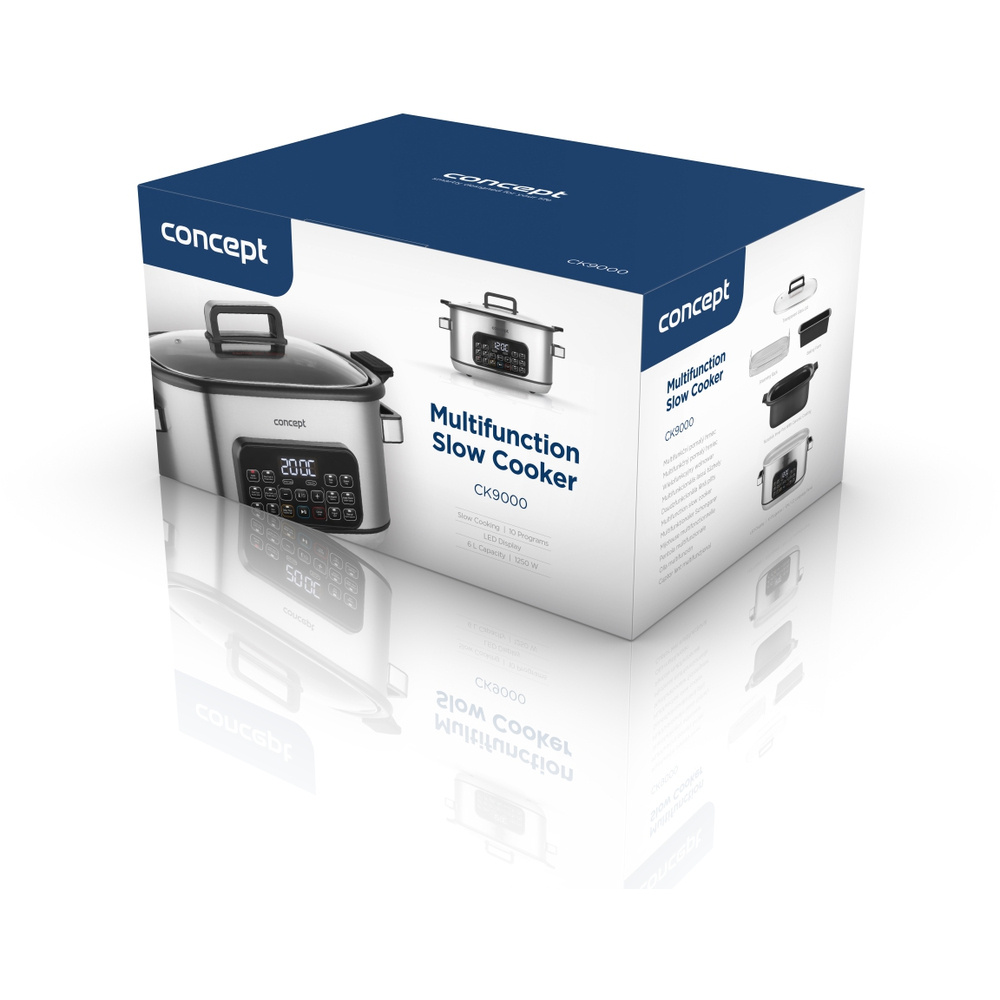 Multifunkčný pomalý hrniec Concept CK9000 je praktický pomocník, ktorý šetrí čas, energiu a miesto na kuchynskej linke. Ponúka 10 automatických programov vrátane pomalého varenia a varenia v pare, takže si ľahko poradí so širokou škálou pokrmov. Pokrievka z tvrdeného skla umožňuje pohodlnú kontrolu varenia bez toho, aby ste ju museli otvárať. Vďaka kompaktným rozmerom sa varič ľahko prenáša - ideálny na chaty alebo dovolenky. Súčasťou balenia je aj mini kuchárka s receptami na jednoduchý začiatok varenia.
