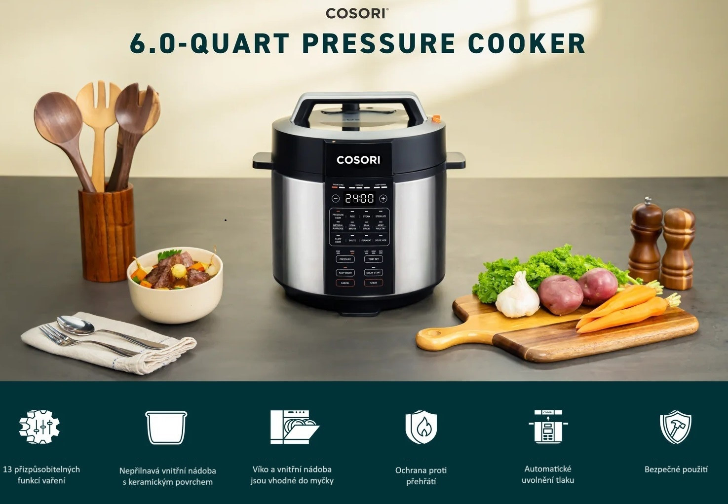 - 8 tlakových a 5 beztlakových režimov varenia