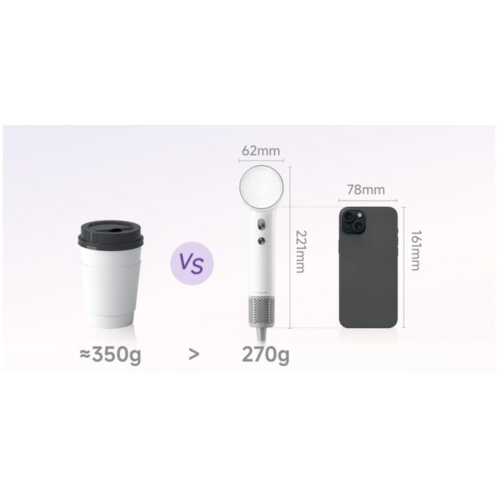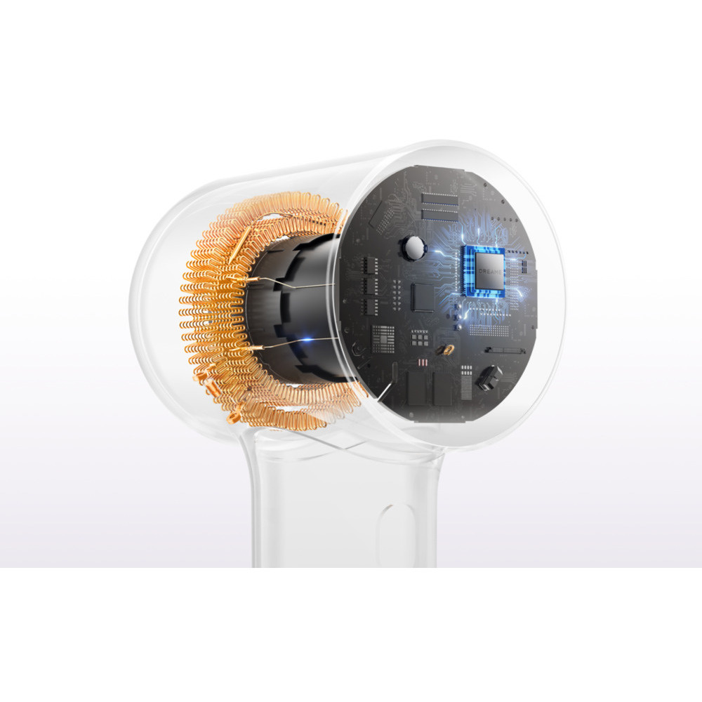 Srdcom sušiča vlasov Dreame Hair Mini Dryer je pokročilý vysokorýchlostný motor so 100 000 otáčkami za minútu. Vytvára silný prúd vzduchu až 70 m/s pri vysokých otáčkach a 55 m/s pri nízkych otáčkach. Napriek tomu zariadenie váži len 270 gramov a má priemer len 62 milimetrov, čo zaručuje pohodlnú manipuláciu a presný styling.