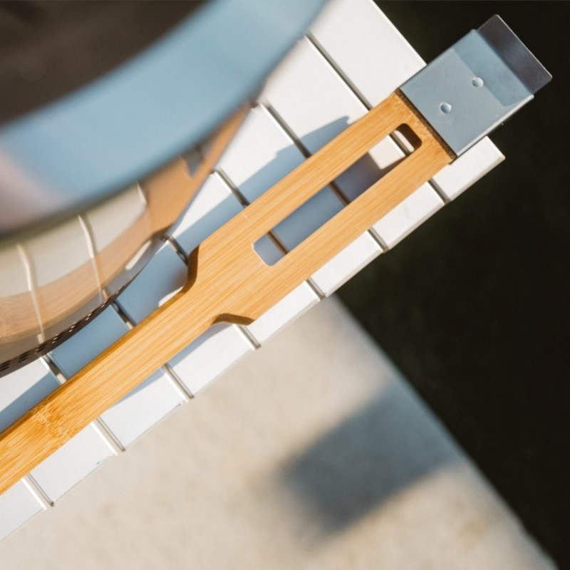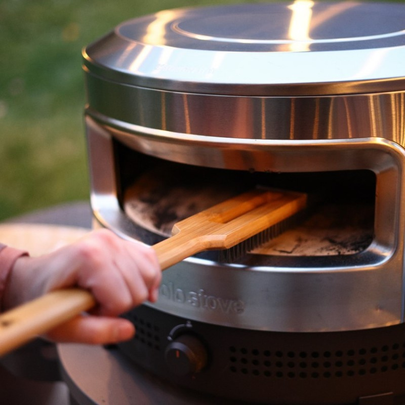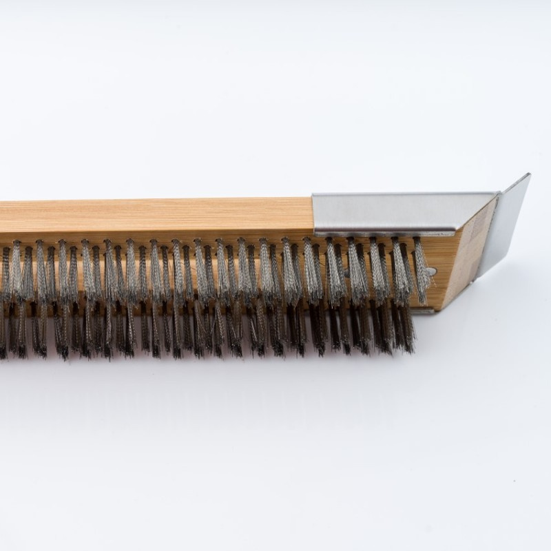 Kefka zo štetín z nehrdzavejúcej ocele na dokonalú údržbu keramických kameňov na pizzu Solo Stove. Účinne odstraňuje pripálené zvyšky jedla. Škrabka z nehrdzavejúcej ocele na druhej strane kefky je potom ideálna na odstraňovanie väčších pripálených zvyškov. Dlhá drevená rukoväť sa pohodlne drží v ruke. Praktické pútko na zavesenie.