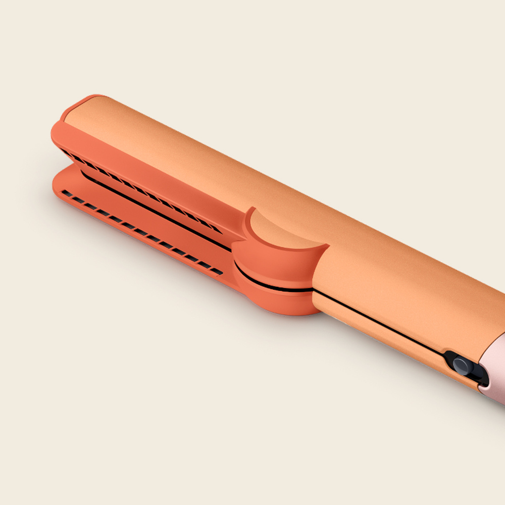 Revolučný systém Airstrait od spoločnosti Dyson využíva dva presne navrhnuté 1,5 mm prieduchy pozdĺž ramien zariadenia. Vzduch sa cez tieto otvory zrýchľuje a vytvára dva vysokorýchlostné prúdy smerujúce nadol. Tieto trysky sa stretávajú pod uhlom 45°, čím vytvárajú koncentrovaný lúč vzduchu, ktorý poskytuje dokonalú kontrolu pri narovnávaní vlasov počas sušenia. Motor s 13 lopatkami rotora vytvára optimálny prúd vzduchu na účinný styling bez použitia extrémnych teplôt.