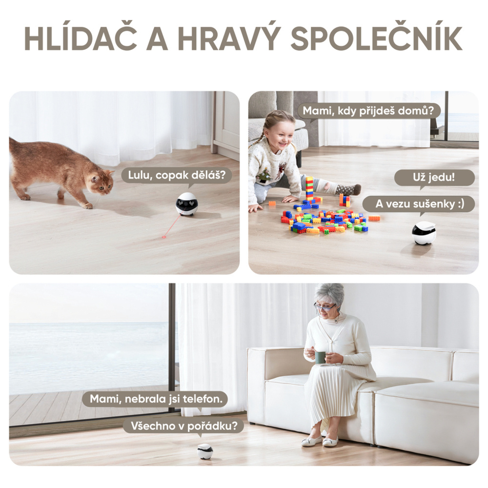 Zábava pre vašich zvieracích priateľov sa nikdy nekončí - EBO Air 2 má zabudovaný laserový lúč, ktorý aktivuje režim hry pre mačky a psy. Môžete ho spustiť manuálne alebo na diaľku prostredníctvom aplikácie, aby sa váš domáci miláčik zabavil, aj keď nie ste doma. Laser sa pohybuje prirodzene a plynulo, čím napodobňuje pohyb skutočnej koristi. Výsledkom je zábava, ktorá podporuje aktivitu vášho domáceho maznáčika a znižuje jeho osamelosť. Robot tak slúži nielen ako bezpečnostné zariadenie, ale aj ako spoločník pre vašich domácich miláčikov, ktorý ich pomáha udržať aktívne a zabaviť vo vašej neprítomnosti.