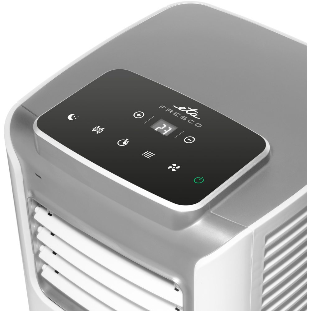 V parných letných dňoch prináša mobilná klimatizácia ETA Fresco skutočnú úľavu. Tento univerzálny pomocník ponúka tri funkcie v jednom zariadení - účinne ochladzuje vzduch, znižuje relatívnu vlhkosť a môže fungovať aj ako klasický ventilátor. Všetky funkcie môžete využívať jednotlivo alebo v kombinácii, prípadne môžete zveriť ovládanie automatickému režimu. Vďaka vysokej účinnosti 7 000 BTU/hod (2000 W) dokáže účinne klimatizovať miestnosti s rozlohou až 20 m². Vďaka kompaktným rozmerom 31 x 31 x 64 cm a štyrom kolieskam ho možno ľahko premiestniť kamkoľvek je potrebné. Používa ekologické chladivo R290 pre vysoko efektívnu a úspornú prevádzku.