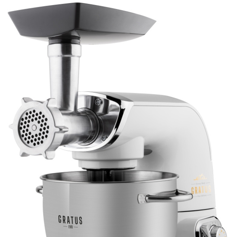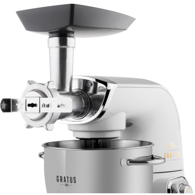 Súčasťou balenia je výkonný 62 mm mlynček na mäso s tromi mlecími platňami na rôznu hrubosť mletia. Pripravte si doma čerstvé mleté mäso na hamburgery alebo tatársky biftek. Mlynček môžete použiť aj na výrobu domácich klobás vďaka špeciálnemu nástavcu alebo na prípravu orientálnych špecialít s nástavcom na mäsové guľky Kebbe. K dispozícii sú aj praktické cukrárenské nástroje na jednoduchú prípravu vianočného pečiva.