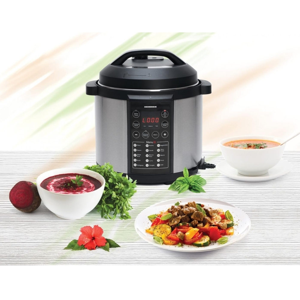 Už žiadne náročné varenie a hodiny strávené v kuchyni! S multifunkčným tlakovým hrncom HEINNER HPCK-6IX si bez námahy pripravíte akékoľvek jedlo, na ktoré máte chuť. Tlakové varenie zachováva živiny a vône ingrediencií a zároveň výrazne skracuje čas varenia v porovnaní s bežným sporákom.