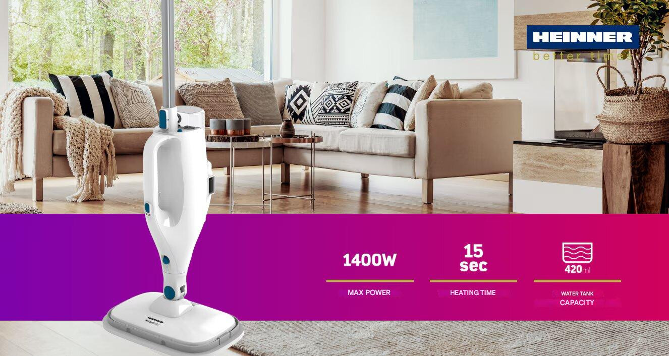 Parný mop HEINNER SteamStrike HSM-M1400WH-BL