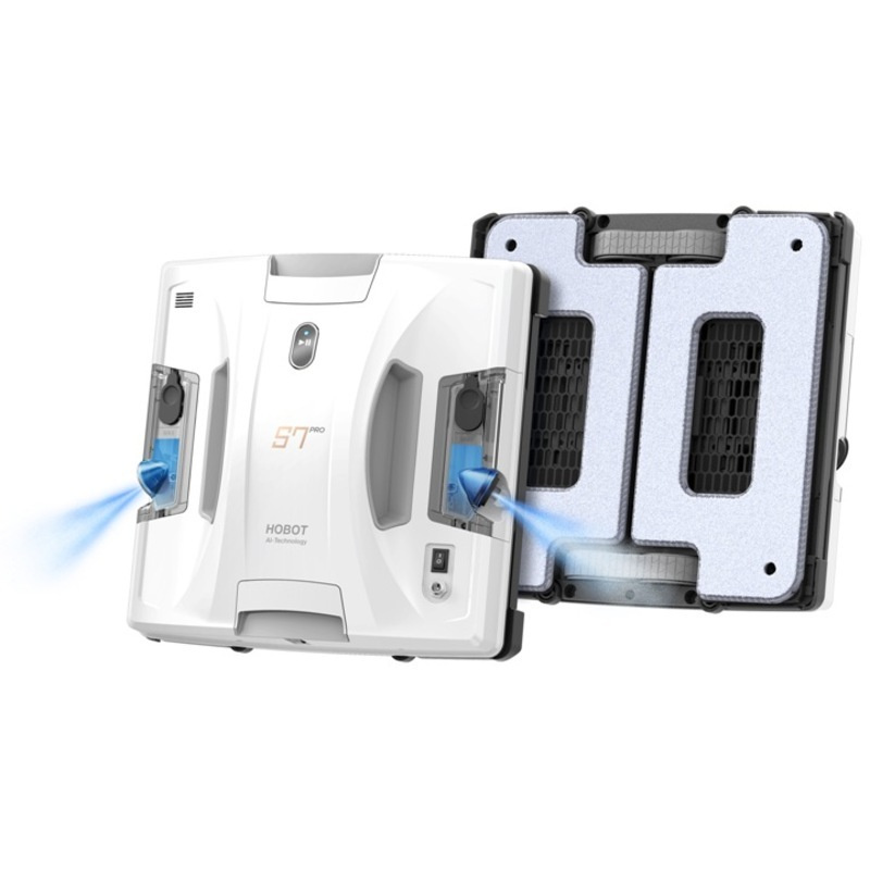 Robotický čistič okien HOBOT S7 PRO je vybavený dvoma zásobníkmi s ultrazvukovými tryskami na automatické rozprašovanie vody. Ultrazvukové trysky vytvárajú jemné čiastočky hmly s hustot ou 15 µm, ktoré zabezpečujú čistenie bez zanechania vodných škvŕn, a jemné vlákna utierok z mikrovlákna presne absorbujú nečistoty a odstraňujú prach z čisteného povrchu. Ultrazvuková tryska veľmi dobre funguje s čistiacim prostriedkom HOBOT alebo čistou destilovanou vodou.