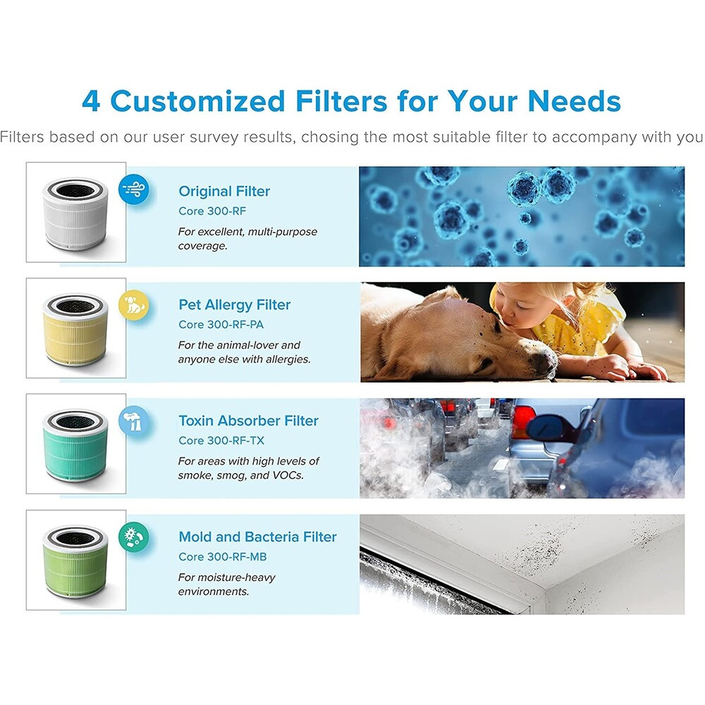 Čistička ponúka pokročilú trojstupňovú filtráciu vzduchu, ktorá začína nylonovým vonkajším filtrom, ktorý zachytáva hrubé nečistoty. Po ňom nasleduje filter HEPA so zložením ARC™, ktorý filtruje jemné prachové častice, plesne, baktérie, peľ a roztoče. Poslednou vrstvou je vysoko účinný uhlíkový filter, ktorý odstraňuje dym, pachy a výpary s veľkosťou až 0,3 mikrónu s účinnosťou 99,97 %.