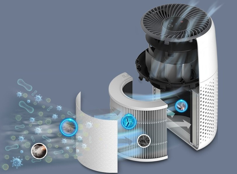 Proces čistenia sa začína nylonovým vonkajším filtrom, ktorý zachytáva hrubšie častice, ako je prach, žmolky alebo vlasy. Potom nasleduje filter HEPA so zložením ARC™, ktorý filtruje jemné prachové častice, plesne, baktérie, peľ, častice dymu, roztoče a vlasy. Poslednou vrstvou je vysoko účinný uhlíkový filter, ktorý eliminuje dym, pachy a výpary. Zariadenie zachytí až 99,97 % všetkých nečistôt až do miniatúrnej veľkosti 0,3 mikrónu.