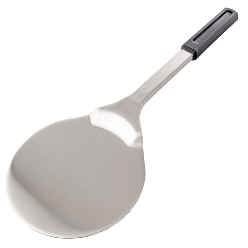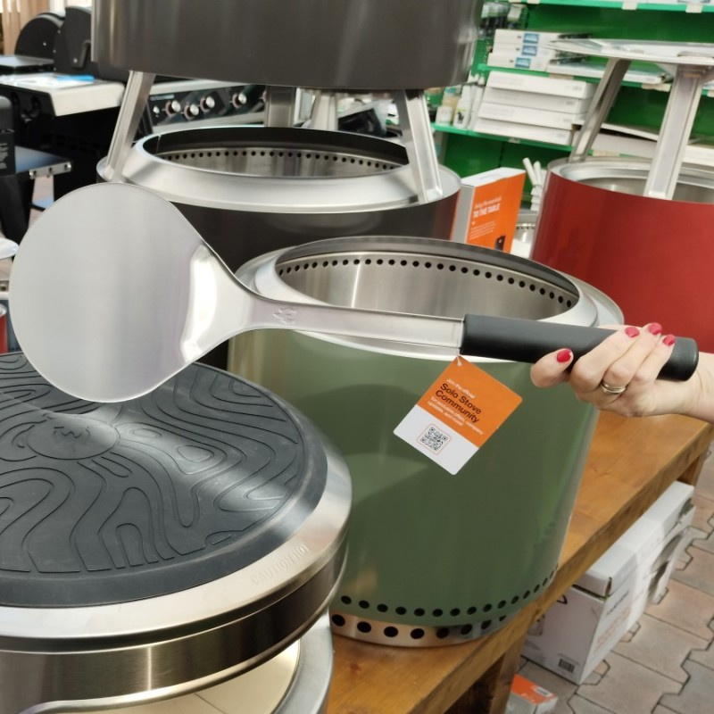Nerezová škrabka na pizzu s extra dlhou rukoväťou pre pece na pizzu Solo Stove. Ideálny nástroj na vyberanie hotovej pizze a koláčov z horúceho kameňa na pečenie. Mäkká plastová rukoväť lopatky dokonale padne do ruky.