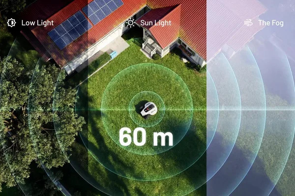 YUKA 2 mini 1000 kombinuje technológiu 360° LiDAR s dosahom 60 m a duálnu kameru na autonómnu navigáciu bez potreby stanice RTK alebo obvodového drôtu. Polovodičový LiDAR vytvára 3D bodovú mapu terénu, ktorá zachytáva každý svah a nerovnosť s centimetrovou presnosťou.