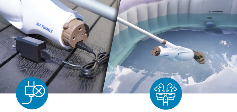 Súprava vysávača pre bazény a vírivky Marimex SpaVac Columbia prináša vysokú flexibilitu a pohodlie pri čistení bazénov. Prevádzku vysávača zabezpečuje dobíjacia lítiová batéria, ktorá vyniká dlhou životnosťou a spoľahlivosťou. Na jedno nabitie môže tento výkonný vysávač pracovať až 40 minút, čo je dostatok času na dôkladné vyčistenie bazéna. Následné nabíjanie je jednoduché a efektívne, trvá približne 4,5 až 6 hodín, počas ktorých sa batéria plne nabije a vysávač je opäť pripravený na použitie. Stav nabitia zobrazuje praktický LED indikátor, ktorý vás informuje o zostávajúcej kapacite batérie, takže vás nikdy nezaskočí vybitá batéria.