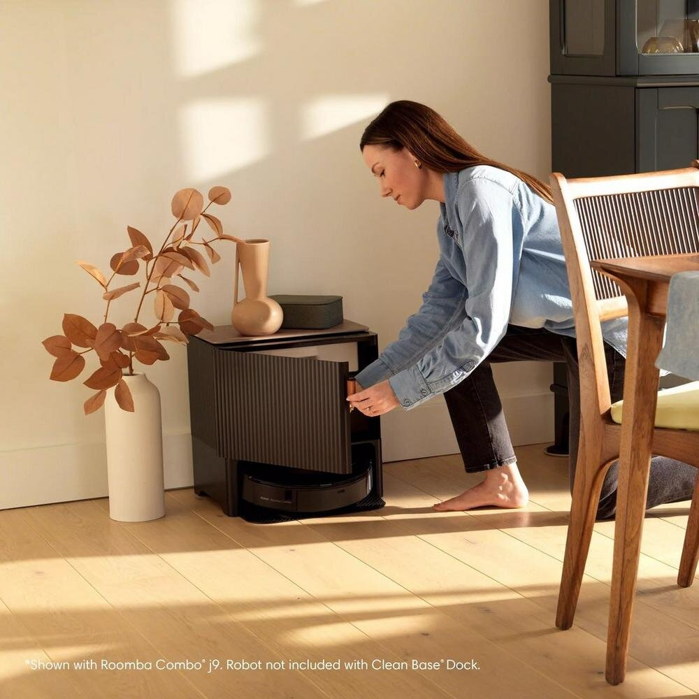 Nabíjacia a čistiaca stanica Clean Base® AutoFill poskytuje kompletnú starostlivosť o váš robotický vysávač Roomba Combo®. Počas tejto doby sa nemusíte o svojho robota starať.