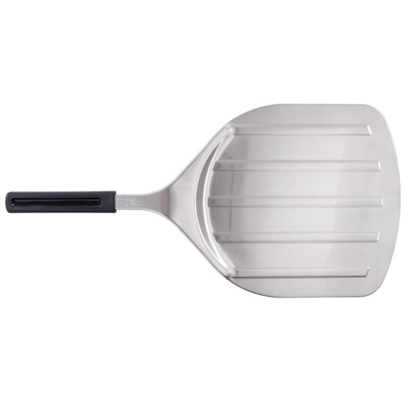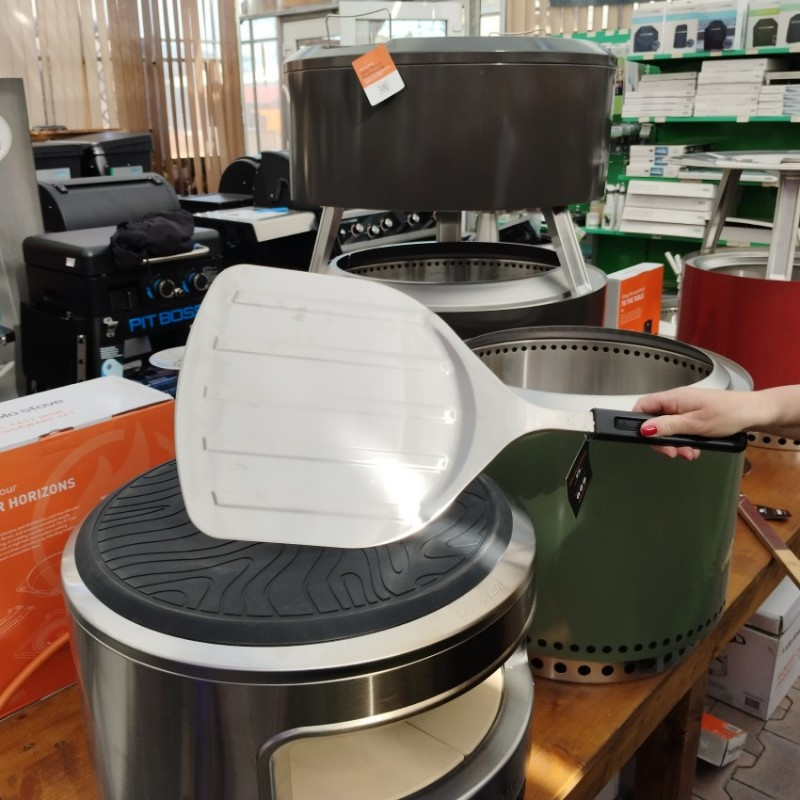 Veľká nerezová škrabka na pizzu pre pece na pizzu Solo Stove. Ideálna na vyberanie hotovej pizze z horúceho kameňa na pečenie. Mäkká rukoväť lopatky s matným povrchom dokonale padne do ruky. Veľkosť plochy lopatky je 30 x 30 cm. Celková dĺžka stierky 61,5 cm.