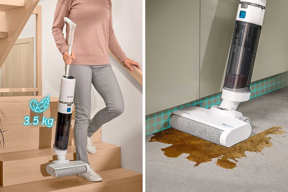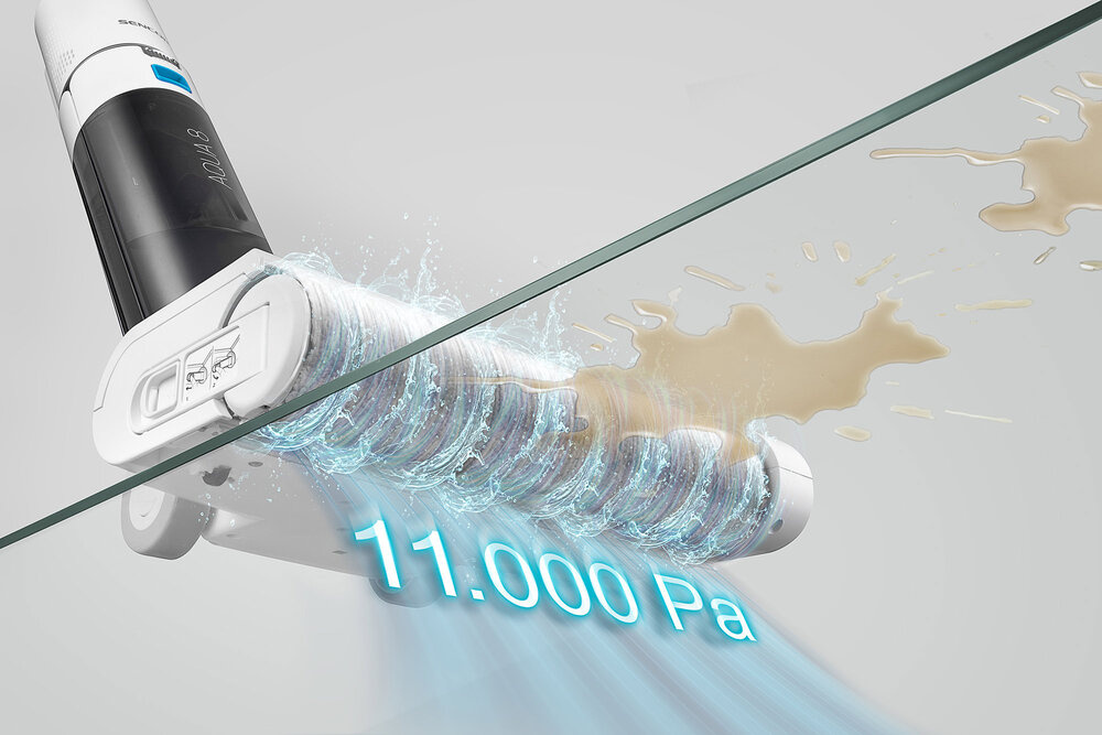 Viacúčelový tyčový vysávač AQUINO SVW 5010WH prináša inovatívne riešenia pre vašu domácnosť. Vďaka digitálnemu motoru dosahuje pôsobivý sací výkon 11 000 Pa. Vďaka funkcii Wet & Dry si poradí so suchými aj mokrými nečistotami. Technológia Power Spin Aqua 8 poskytuje vysokorýchlostné rotačné čistenie, ktoré účinne odstraňuje aj zaschnuté škvrny. Na jedno nabitie vydrží až 25 minút intenzívneho používania.