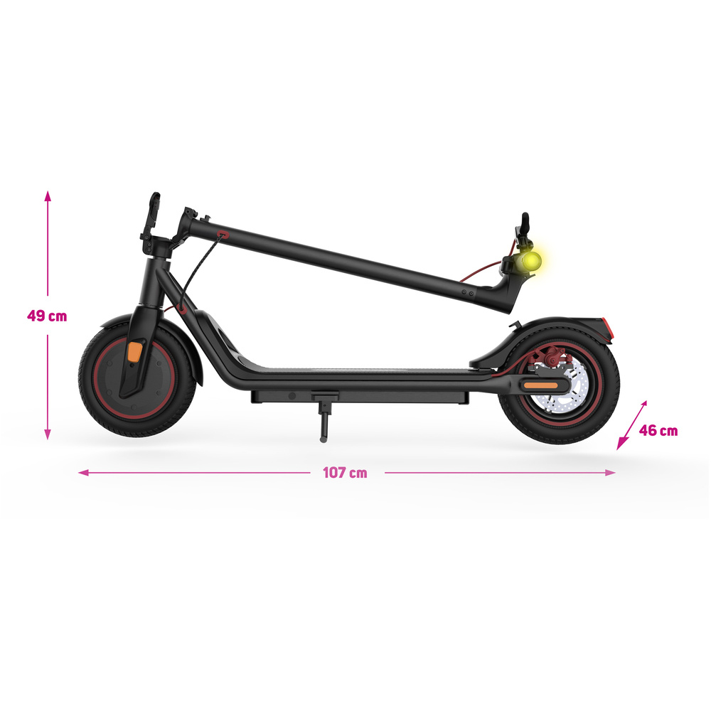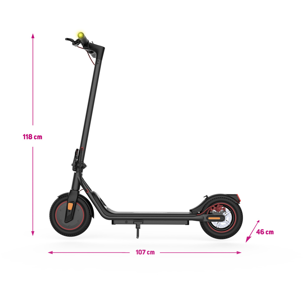 Mestská elektrická kolobežka je vybavená výkonným 350 W motorom, ktorý poskytujedynamickú jazdu pri rýchlosti až 25 km/h. Ponúka štyri jazdné režimy - SPORT (25 km/h), DRIVE (20 km/h), ECO (10 km/h) a WALK (6 km/h). Zvýšený výkon umožňuje stúpať až do sklonu 15°, čo je ideálne pre kopcovitý mestský terén.