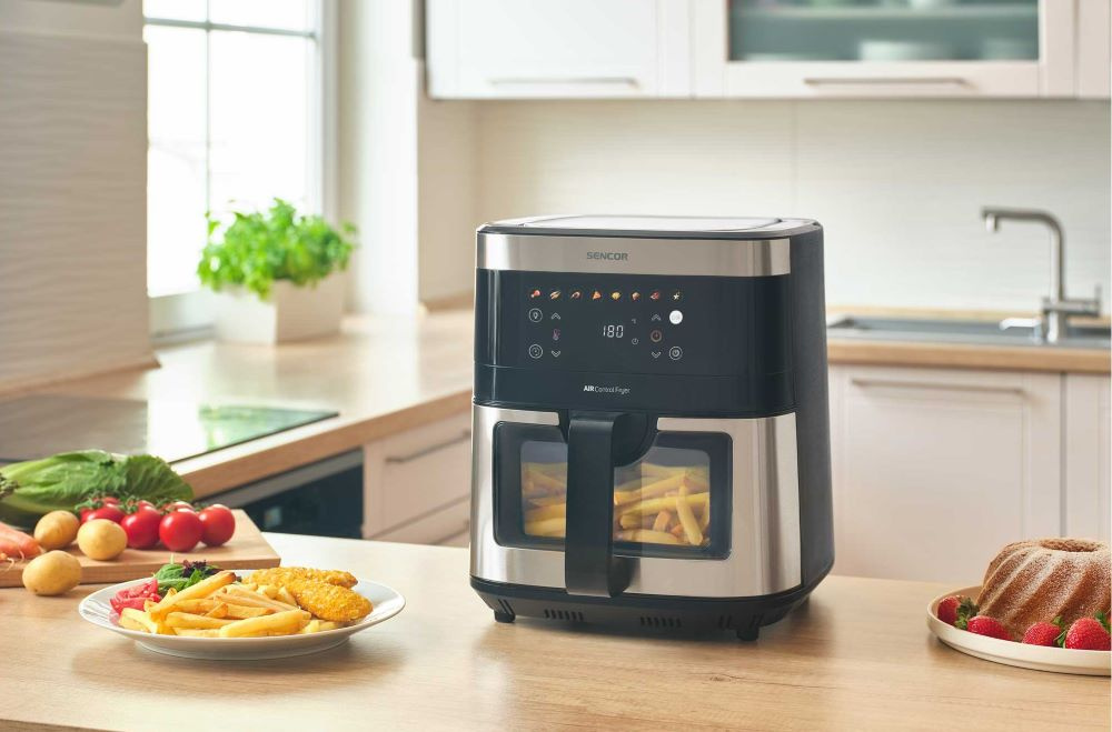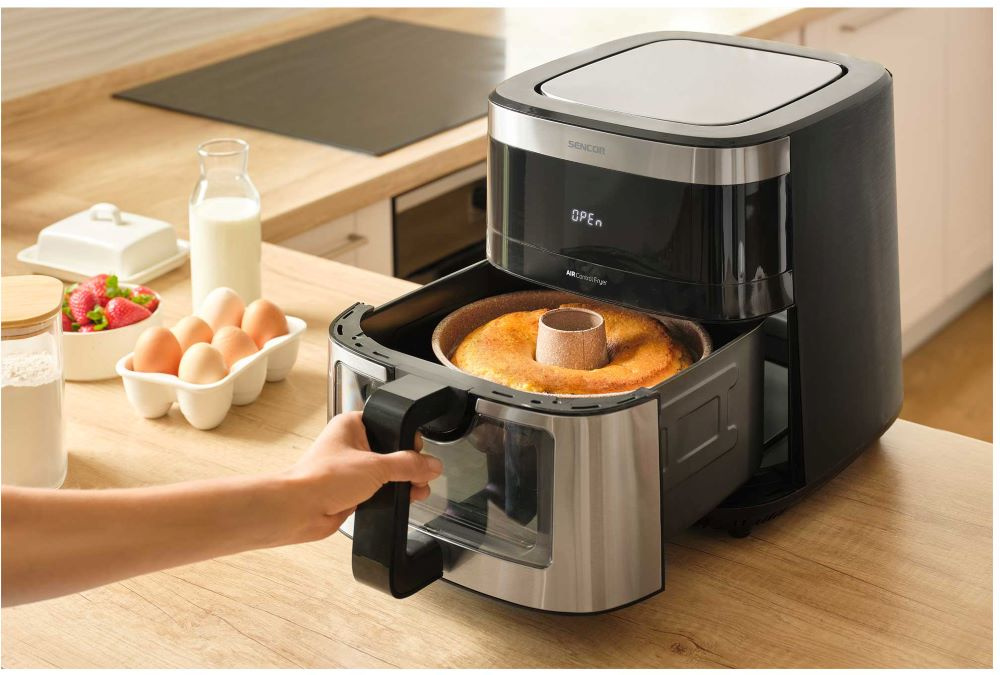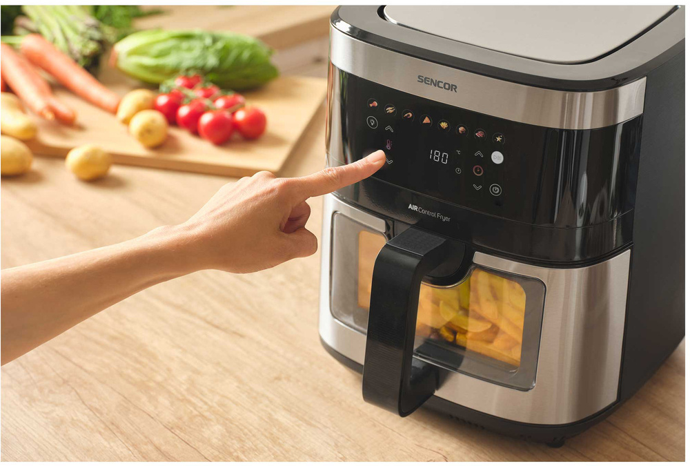 S teplovzdušnou fritézou Sencor SFR 9000SS môžete pripravovať svoje obľúbené jedlá zdravšie a bez prebytočného tuku. Vďaka cirkulácii horúceho vzduchu dosiahnete rovnaké chrumkavé výsledky ako pri bežnom fritovaní , ale bez nepríjemného zápachu spáleného oleja.