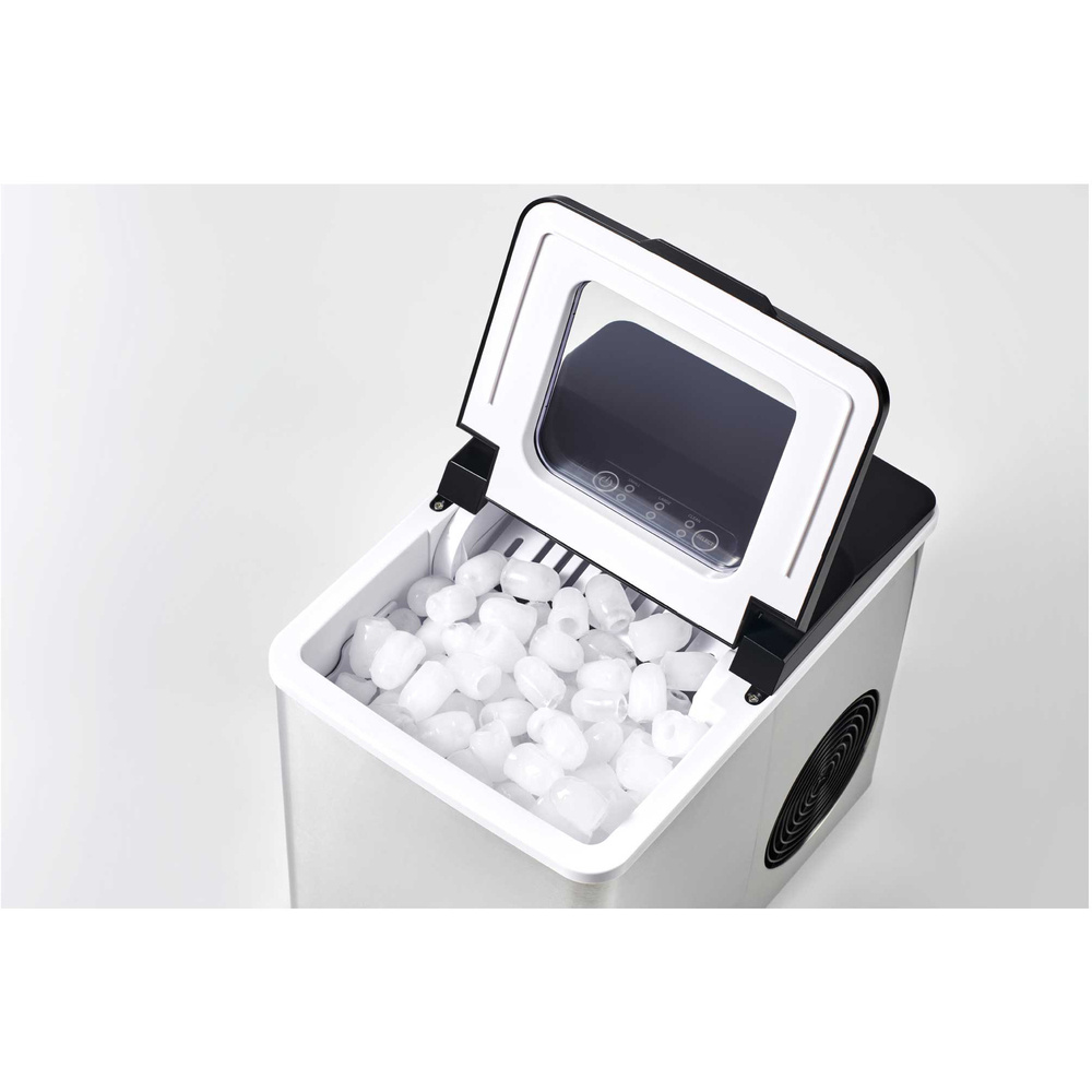 Telo je vyrobené z kvalitnej nehrdzavejúcej ocele str iebor nej farby, ktorá zaručuje dlhú životnosť a štýlový vzhľad. S príkonom 150 W pracuje efektívne a úsporne. Súčasťou balenia je praktická naberačka na ľad, kôš na ľad a vyberateľný filter. Výrobník ľadu je vybavený vypúšťacím otvorom na jednoduchú údržbu a čistiacim programom. Funkcia automatického vypnutia sa aktivuje, keď je nádržka plná alebo keď dôjde voda.