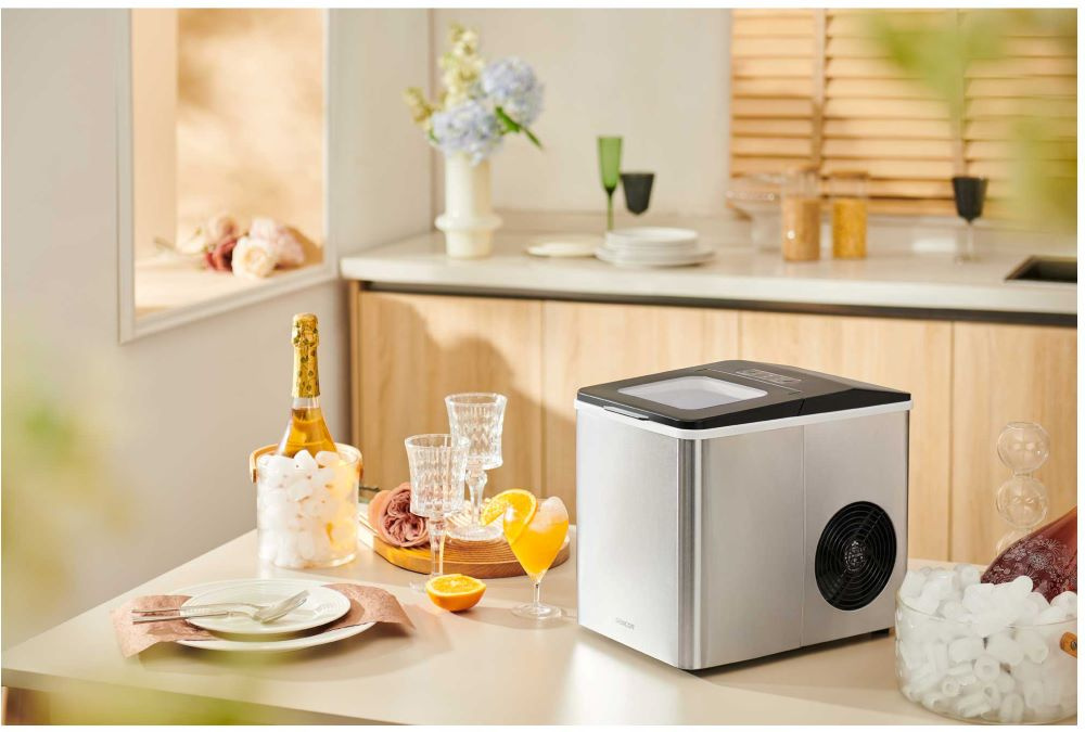Počas jedného cyklu, ktorý trvá 7-15 minút, dokáže zariadenie vyrobiť 9 kociek ľadu typu klobúk. K dispozícii sú dve veľkosti kociek, takže si môžete vybrať podľa svojich potrieb. Vďaka priehľadnému veku môžete sledovať celý výrobný proces. Výrobník pracuje veľmi ticho s maximálnou hlučnosťou 55 dB.