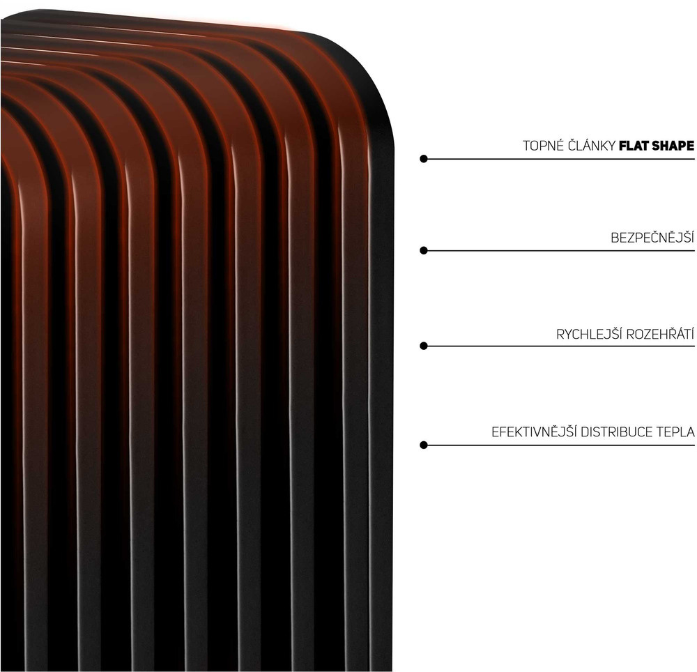 Predstavujeme vám elektrický olejový radiátor, ktorý prináša inovatívne riešenia na vykurovanie rôznych priestorov. S maximálnym výkonom 2000 W a tromi výkonovými stupňami ponúka flexibilné možnosti vykurovania. Jedinečná technológia FLAT SHAPE s deviatimi vykurovacími telesami zabezpečuje optimálne rozloženie tepla v miestnostiach s rozlohou do 18 m². Vďaka sofistikovanému systému ovládania môžete ľahko nastaviť požadovanú teplotu a výkon pomocou dvoch otočných ovládačov. Radiátor má tri režimy výkonu - 800 W, 1200 W a 2000 W, ktoré umožňujú prispôsobiť vykurovanie aktuálnym potrebám a veľkosti miestnosti.
