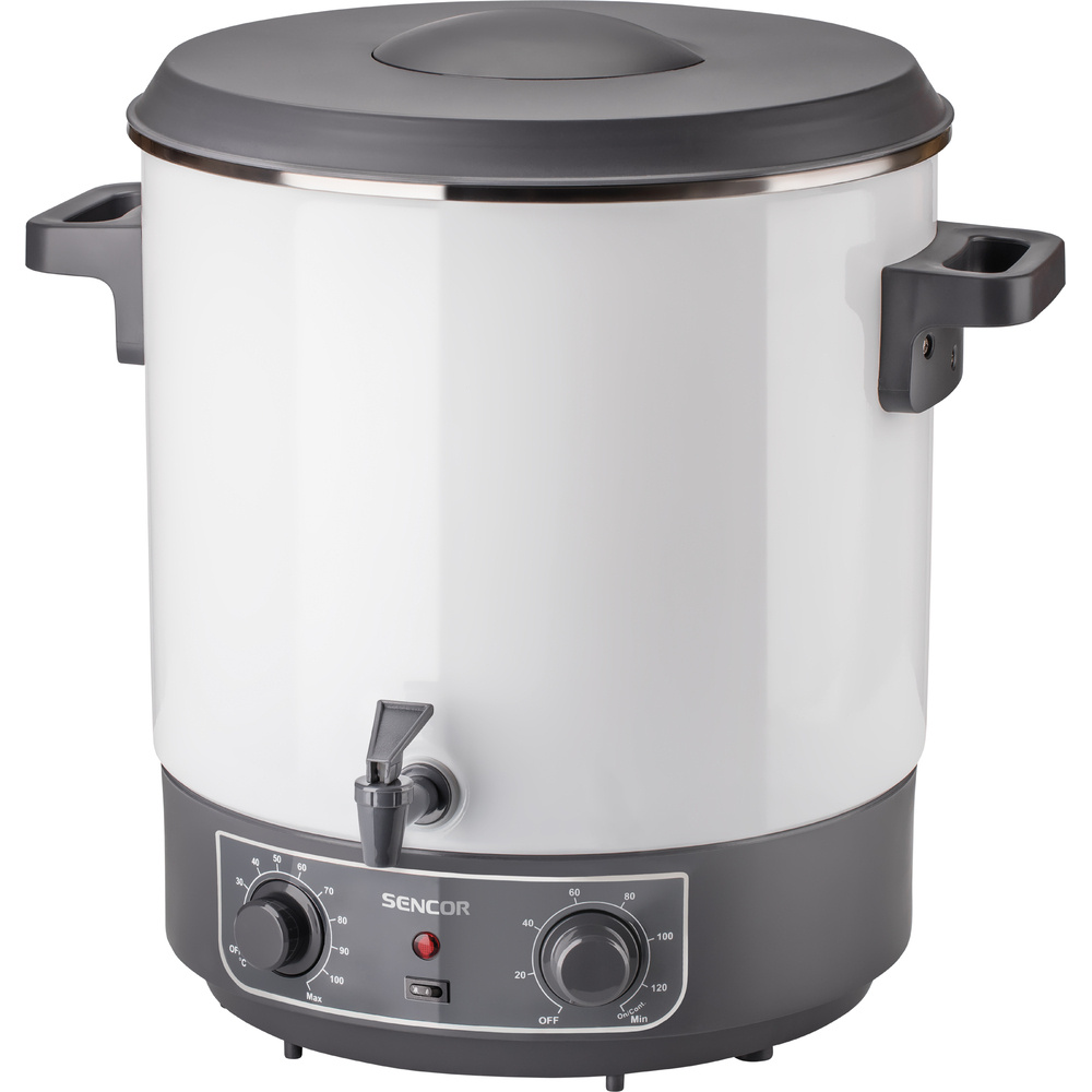 SPP 2100WH sa neobmedzuje len na konzervovanie. Je vhodný aj na prípravu horúcich nápojov, polievok a omáčok. Praktická zabudovaná výlevka uľahčuje dávkovanie pripravených nápojov, ako je varené víno, čaj, punč alebo iné horúce nápoje. Pre bezpečnú manipuláciu sú rukoväte tepelne izolované, čím sa eliminuje riziko popálenia. Hrniec ponúka dva režimy konzervácie - s nastaviteľným časovačom na 20-120 minút alebo v nepretržitom režime, ktorý je ideálny na udržiavanie stálej teploty potravín.