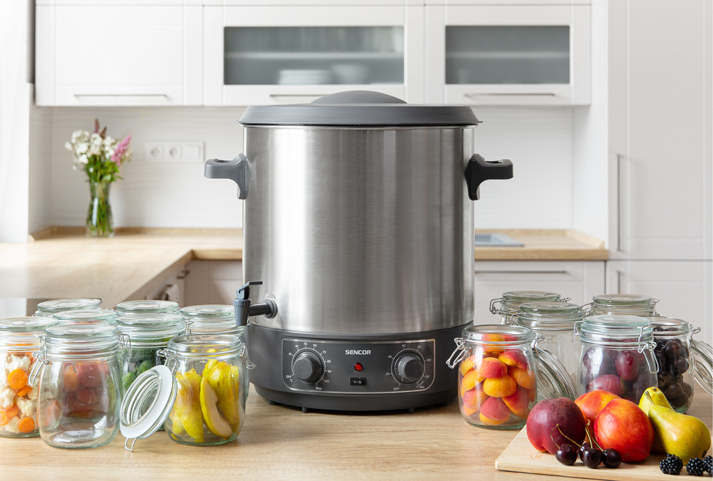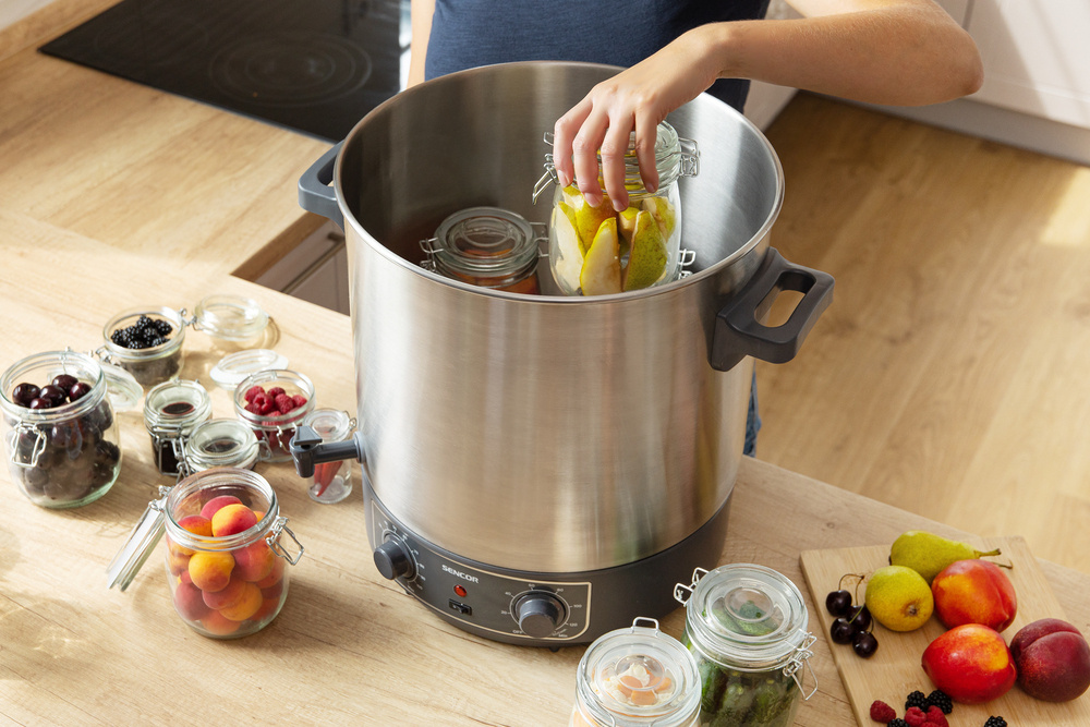 Automatický hrniec na konzervovanie SPP 2200SS vyniká objemným dizajnom s objemom 27 litrov a vysokým príkonom 1800 W, ktorý zabezpečuje rýchly a efektívny ohrev. Vysokokvalitné prevedenie z nehrdzavejúcej ocele zaručuje hygienickú prípravu a jednoduchú údržbu bez ovplyvnenia chuti a vône potravín. Do hrnca sa zmestí až 14 pohárov s objemom 1 l, pričom menšie poháre možno prakticky stohovať, aby sa maximálne využil priestor. Tento všestranný pomocník umožňuje dokonalé konzervovanie a sterilizovanie ovocia, zeleniny, džemov, pochutín a mäsa.