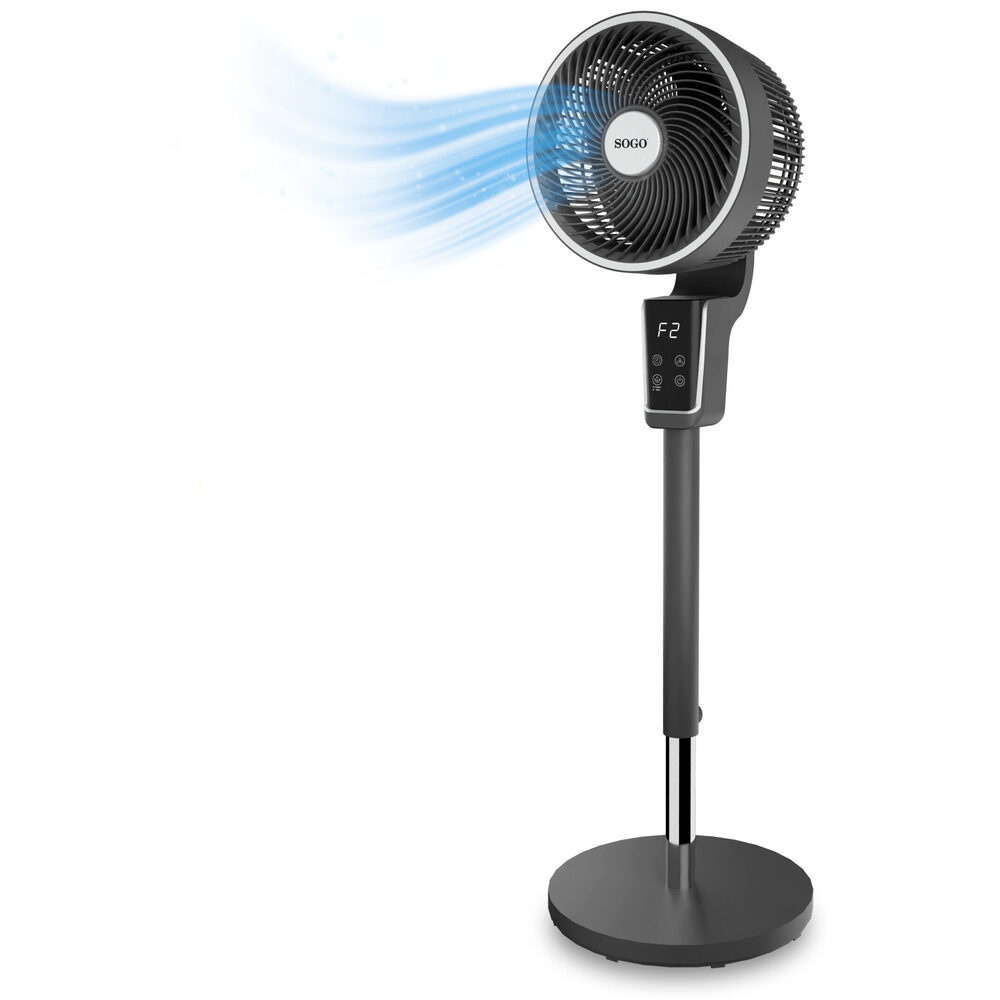 Stojanový ventilátor SOGO SS-21340 predstavuje špičku v oblasti domáceho chladenia. Jeho digitálny displej zobrazuje okolitú teplotu a ponúka prehľadné dotykové ovládanie všetkých funkcií. Pre ešte pohodlnejšiu obsluhu je súčasťou balenia diaľkový ovládač, ktorývám umožníovládať ventilátor odkiaľkoľvek v miestnosti. Praktická funkcia automatického vypnutia šetrí energiu a neruší počas nočných hodín.