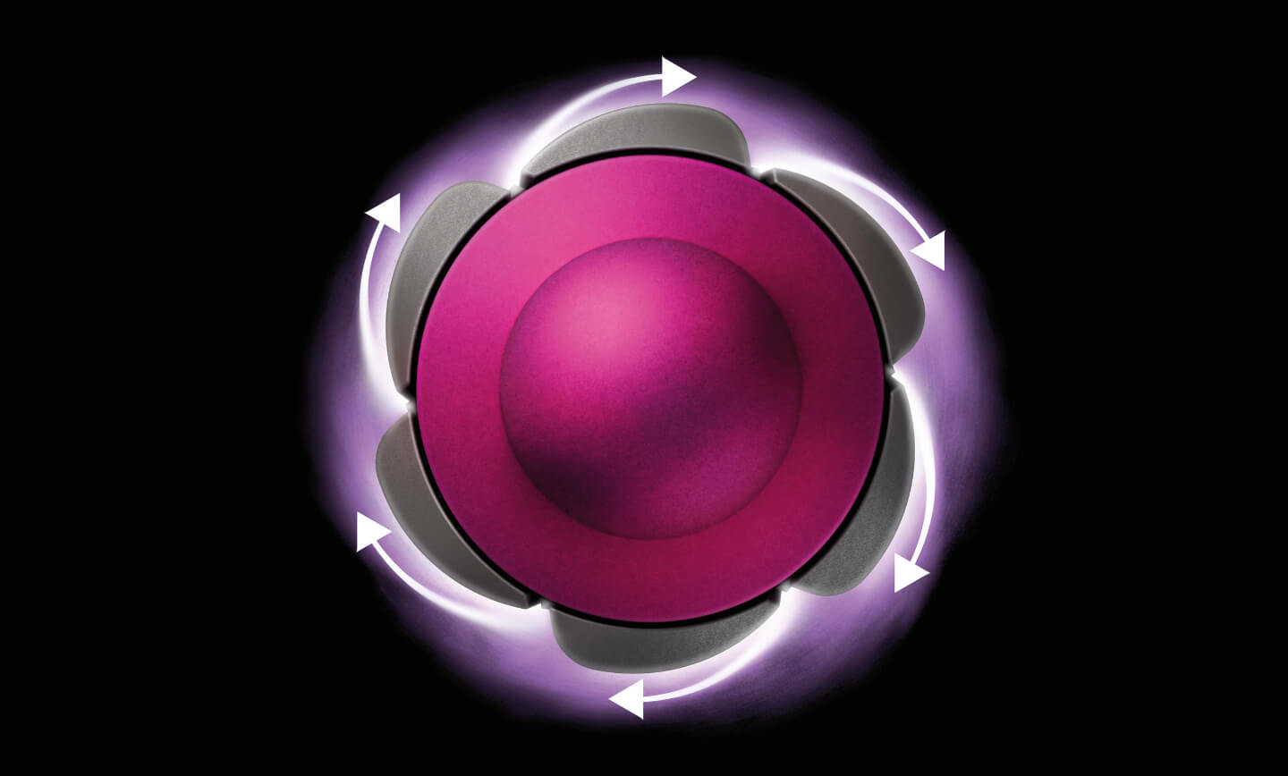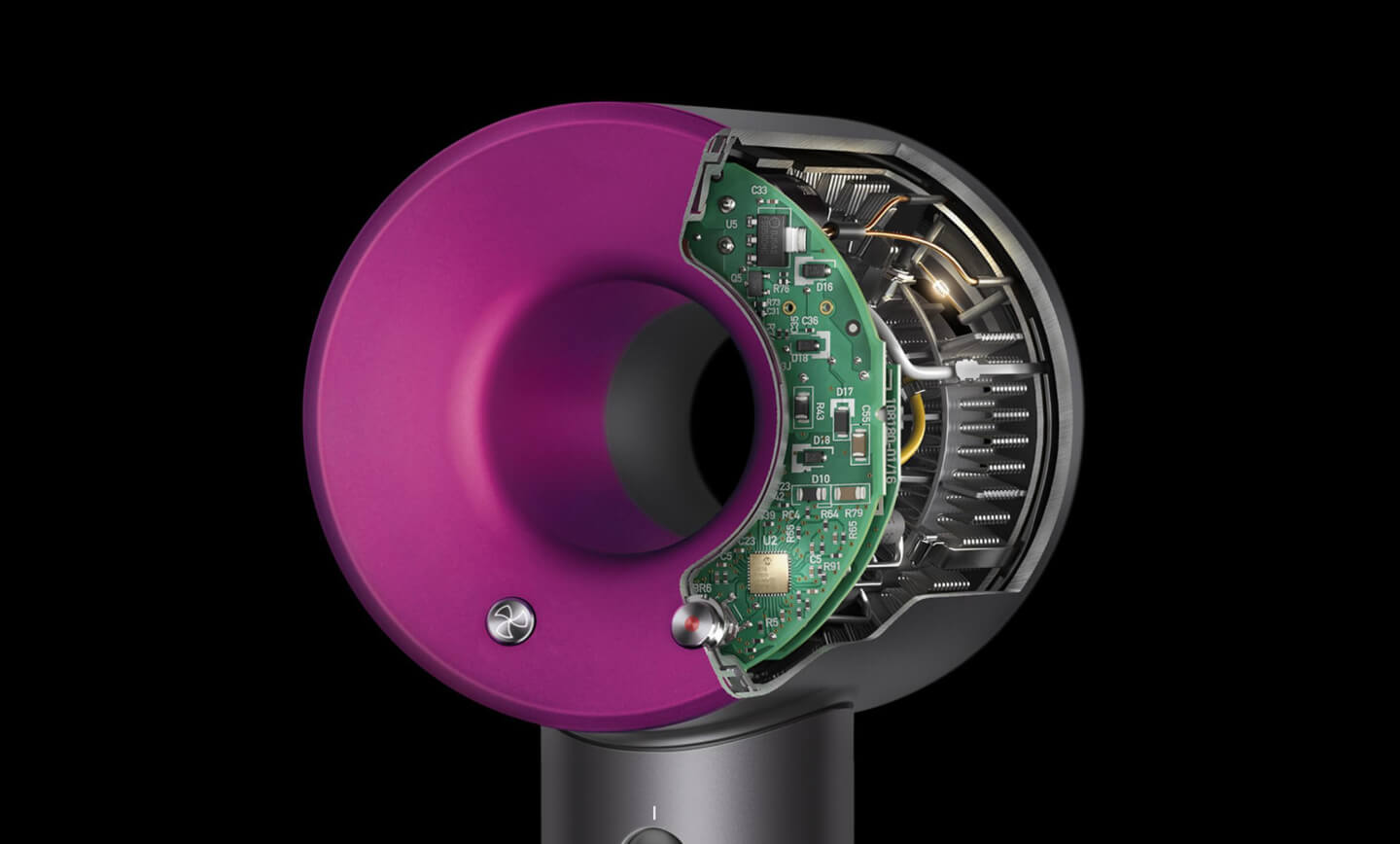 Malý, výkonný digitálny motor Dyson V9 sa otáča rýchlosťou až 110 000 ot/min. V kombinácii s technológiou Air Multiplier™ vytvára vysokotlakový prúd vzduchu s vysokou rýchlosťou na rýchle sušenie a precízny styling.