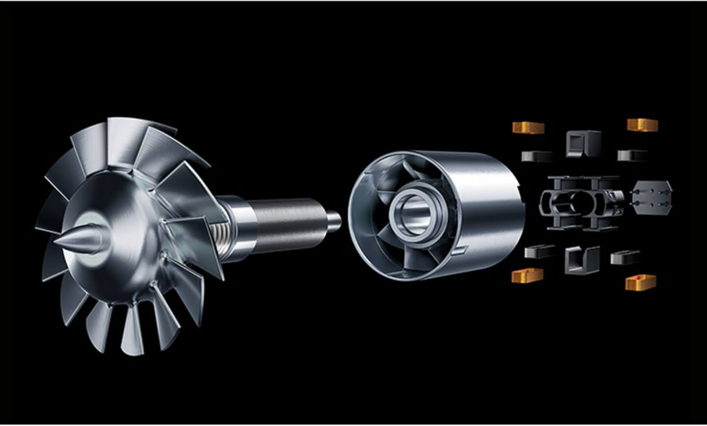 Rotor s 13 lopatkami sa otáča rýchlosťou 110 000 ot/min a vytvára tlak 3,2 kPa. Dostatočne výkonný na vytvorenie tlaku vzduchu potrebného na vytvorenie Coanda efektu.