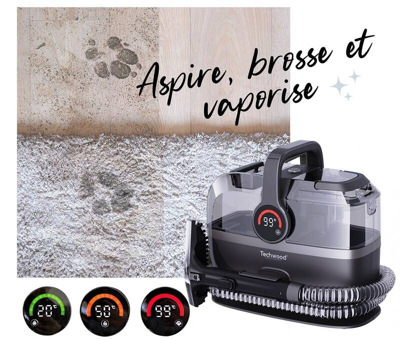 Techwood TAN7066V kombinuje parné čistenie a výkonné vysávanie pre viditeľne čistejšie koberce, čalúnenie a textílie. Parný systém s výkonom 800 W uvoľňuje nečistoty, mastnotu a staré škvrny hlboko vo vláknach. Vhodný na koberce, čalúnenie, schody a interiéry vozidiel. Výkonné 600W sanie okamžite absorbuje nečistoty spolu s prebytočnou vlhkosťou, vďaka čomu povrchy rýchlejšie vyschnú.