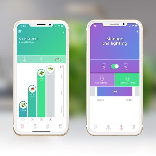Véritable Connect je najpokročilejší model domácej záhrady vyrobený vo Francúzsku, ktorý možno ovládať niekoľkými kliknutiami z mobilnej aplikácie na optimalizáciu zberu. Tento inteligentný pripojený sadzač je kombinujúci všetky výhody modelov Classic a Smart s dodatočným pripojením cez Bluetooth. Bezplatná aplikácia, ktorá je k dispozícii pre systémy iOS aj Android, umožňuje sledovať vývoj rastlín, nastaviť režim osvetlenia a prijímať upozornenia, keď je nádrž prázdna. Ideálne riešenie pre moderné domácnosti, ktoré hľadajú maximálnu kontrolu nad svojím pestovaním.